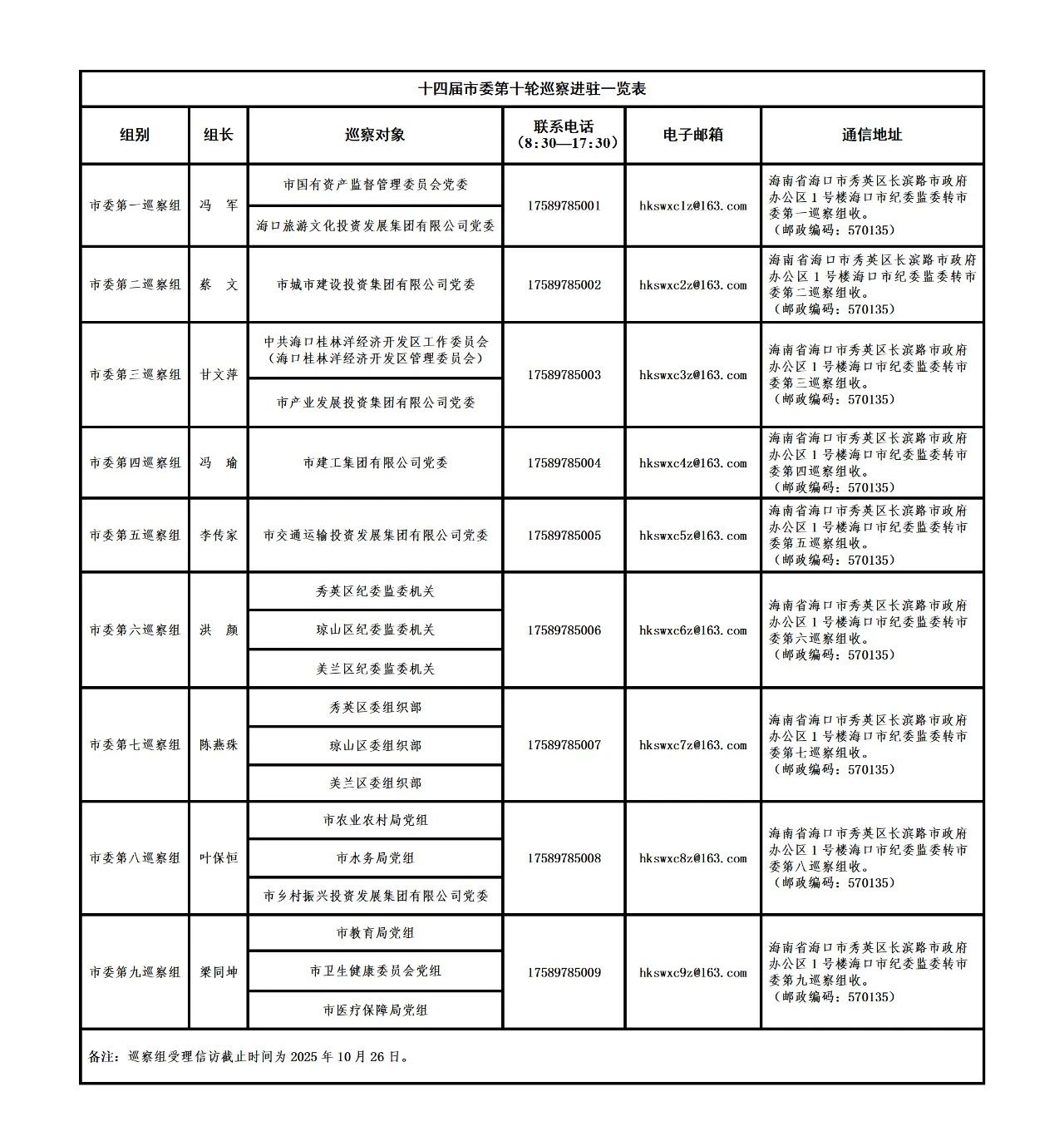 十四届市委第十轮巡察全部完成进驻 向社会公布联系方式