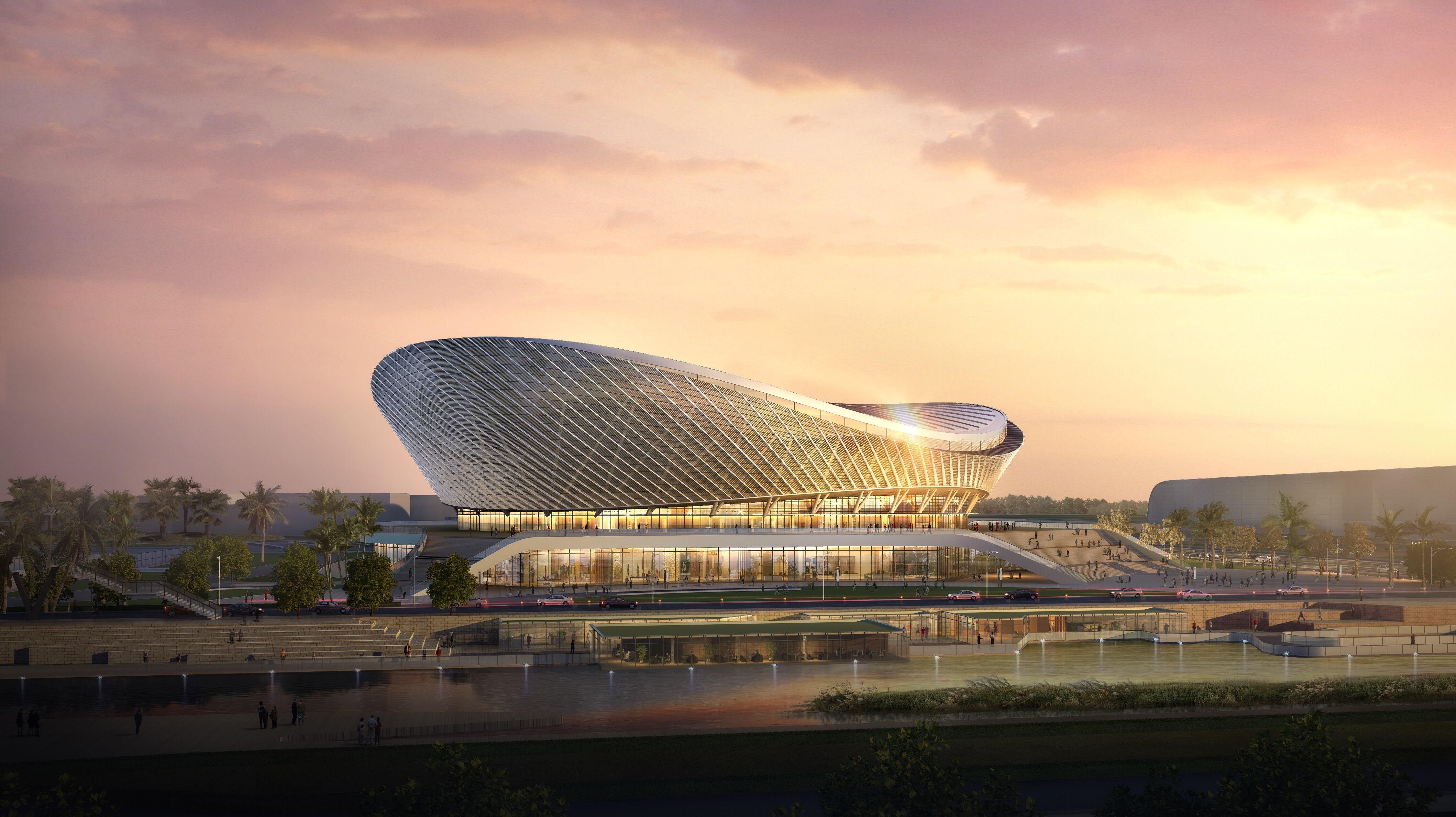 该项目位于海口市长滨路东侧,毗邻五源河森林公园,总建筑面积108696平方米,含65796平方米的体育场、14000平方米的功能配套、1000平方米的票务信息中心、200平方米的开闭所、2200平方米的观众步行连桥及5000平方米的副场管理用房、20500平方米的地下面积。体育场看台设置41424个普通座位,以及无障碍坐席80座和陪护席80座,造形设计以海洋元素为主,整体形似一个张开的贝壳。项目建成后,俱乐部国际友谊赛、哈林篮球、国际围棋队际赛等赛事,以及英超阿森纳俱乐部、北京奥林匹克俱乐部、上海绿地申花俱乐部、北京国安俱乐部、天津泰达俱乐部、英超阿森纳俱乐部等赛事机构签约五源河文体中心。