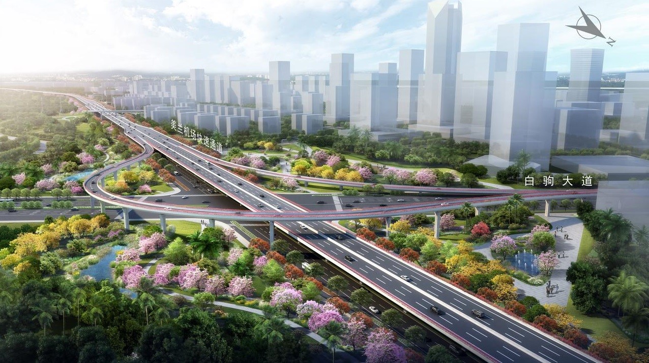 该项目北起正在建设的海文北路,南接现状桂林洋互通,路线全长约5.367公里,主要新建高架快速路及地面辅路、互通立交,建设内容包括道路工程、交通工程、桥梁工程、排水工程、照明工程及景观绿化工程等。作为海文高速的延伸,江东新区快速通道项目将匹配服务全岛封关运作后,美兰机场客流高速增长产生的交通需求,有效缩短机场与琼北地区的交通时间,同时通过建立梳式结构,有效分流龙昆路、国兴大道车流,提升海口交通效率。