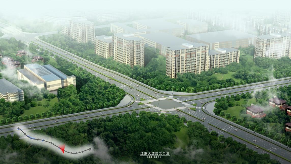 该项目起于新东大桥,向东与琼山大道相交处为终点,道路全长3418米,红线宽40米。该项目联通新东大桥,实现整个江东片区与主城区的紧密相连,进一步完善江东片区基础设施配套功能,有利于发挥该片区的生态资源优势,推进城乡一体化协调发展。