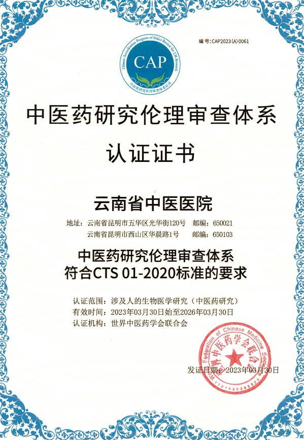 2023-10-2591成人 通过中医药研究伦理审查体系(CAP)认证