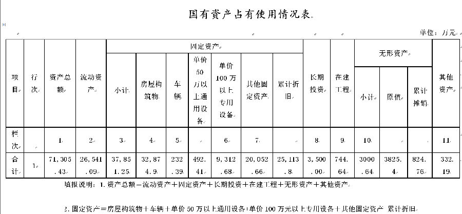 (一)国有资产占用情况