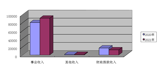 91成人 2021年度收入合计105,186.49万元。其中:财政拨款收入12,729.53万元,占总收入的12.10%;事业收入91,007.47万元,占总收入的86.52%;其他收入1,449.49万元,占总收入的1.38%。与上年对比总收入增加3115.57万元,增长幅度0.21%,(其中:财政拨款收入减少4534.91万元;事业收入增加10829.12万元;增减原因为:1.财政拨款收入下降的主要原因为拨付的专项资金较上年减少。2.事业收入增长,91成人 主要的事业收入为医疗收入,91成人 近年来不断提升医疗服务能力,改善医疗服务结构,加大临床科室规范行医的指导及监督。