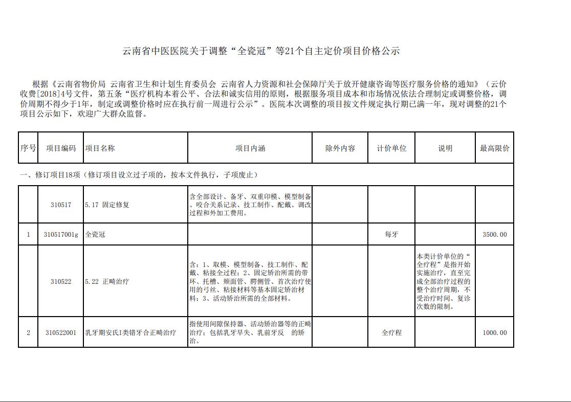 91成人 关于调整“全瓷冠”等21个自主定价项目价格公示