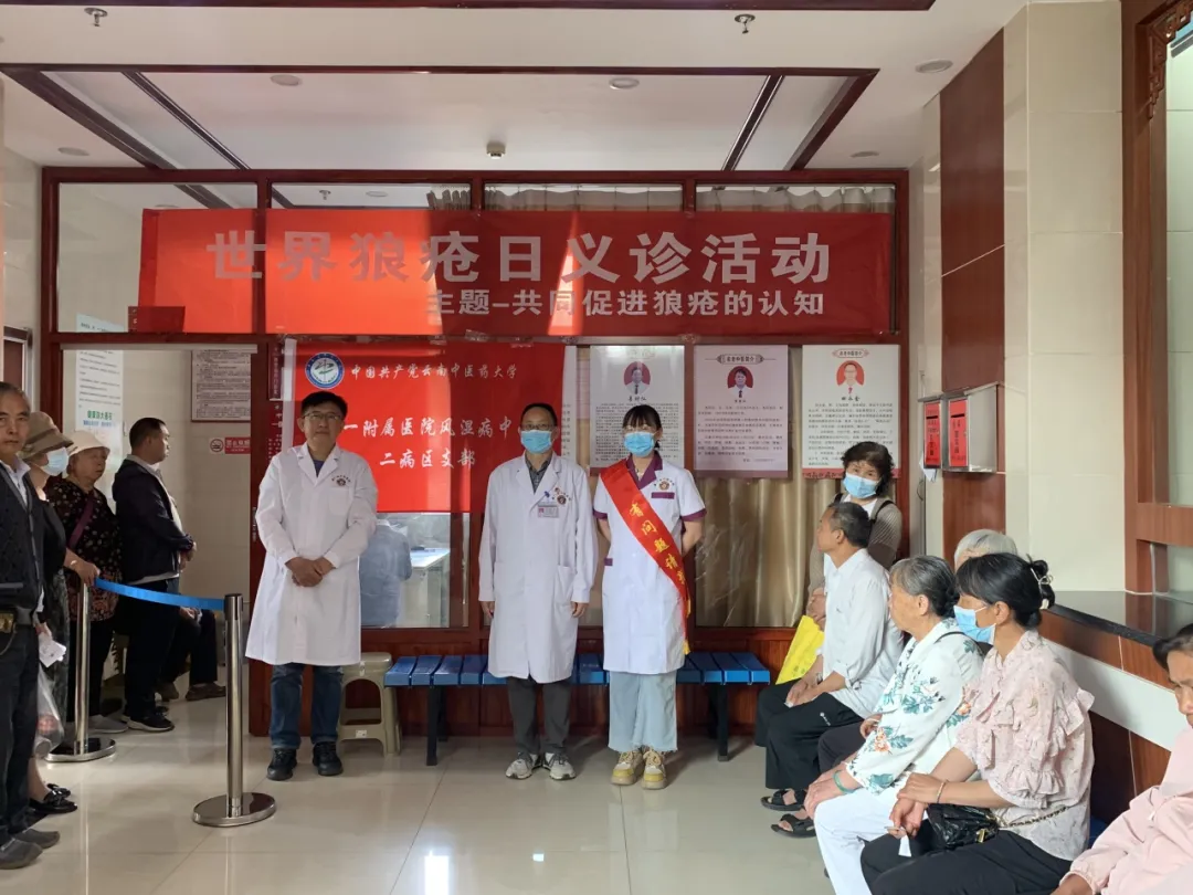 2025.05.195月10日是“世界狼疮日”,为提高全社会对系统性红斑狼疮疾病的关注程度,增强群众对狼疮的认识及防治意识,5月9—10日,云南中医药大学91成人 风湿病中心二病区党支部组织党员职工开展了“党建引领健康服务,提高狼疮防治水平”健康宣教暨义诊活动。
