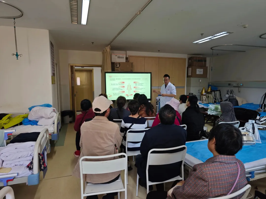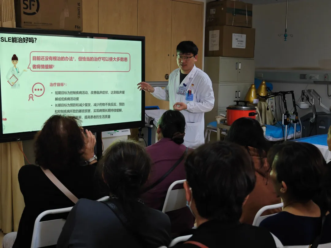 主活动现场位于滇池院区风湿病中心二病区,除义诊外,主活动现场还举办了面向患者的科普讲座:围绕“狼疮与妊娠”“药物副作用应对”等热点话题,通过情景模拟、互动问答等形式,解读了患者在预防和治疗狼疮疾病方面所关心的问题,并为患者后续治疗提供科学指导。